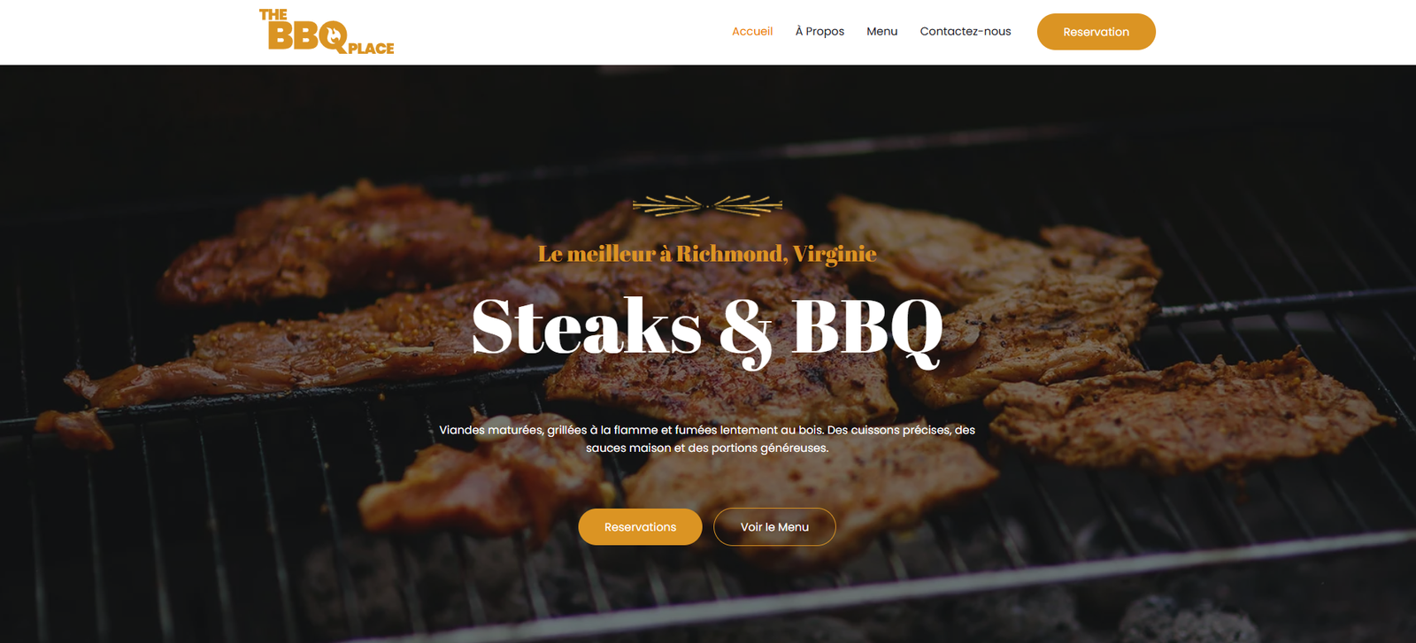 Un site élégant, moderne et appétissant présentant des menus BBQ, photos immersives et réservation en ligne simplifiée.